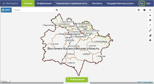 Қалалардың интерактивті карталары негізінде Шығыс Қазақстан облысының геопорталын құру
